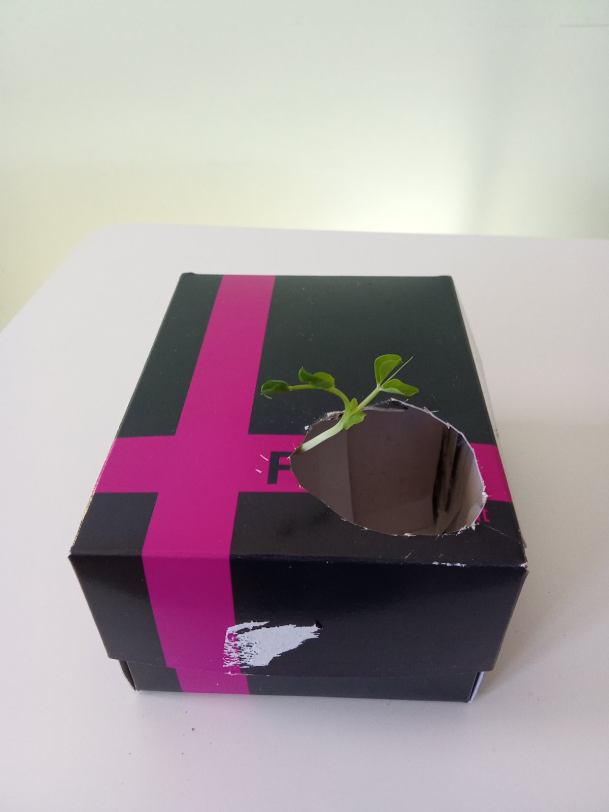 Τα υλικά που χρησιμοποιήθηκαν για το πείραμά ήταν ένα κουτί με άνοιγμα στο καπάκι του κι ένα μικρό φυτό. Το φυτό τοποθετήθηκε αντίθετα από το άνοιγμα και το κουτί κλείστηκε ενώ βρισκόταν σε φωτεινό σημείο. Μετά από 1 εβδομάδα το φυτό άρχισε να βγαίνει από το άνοιγμα κατευθυνόμενο προς το φώς.